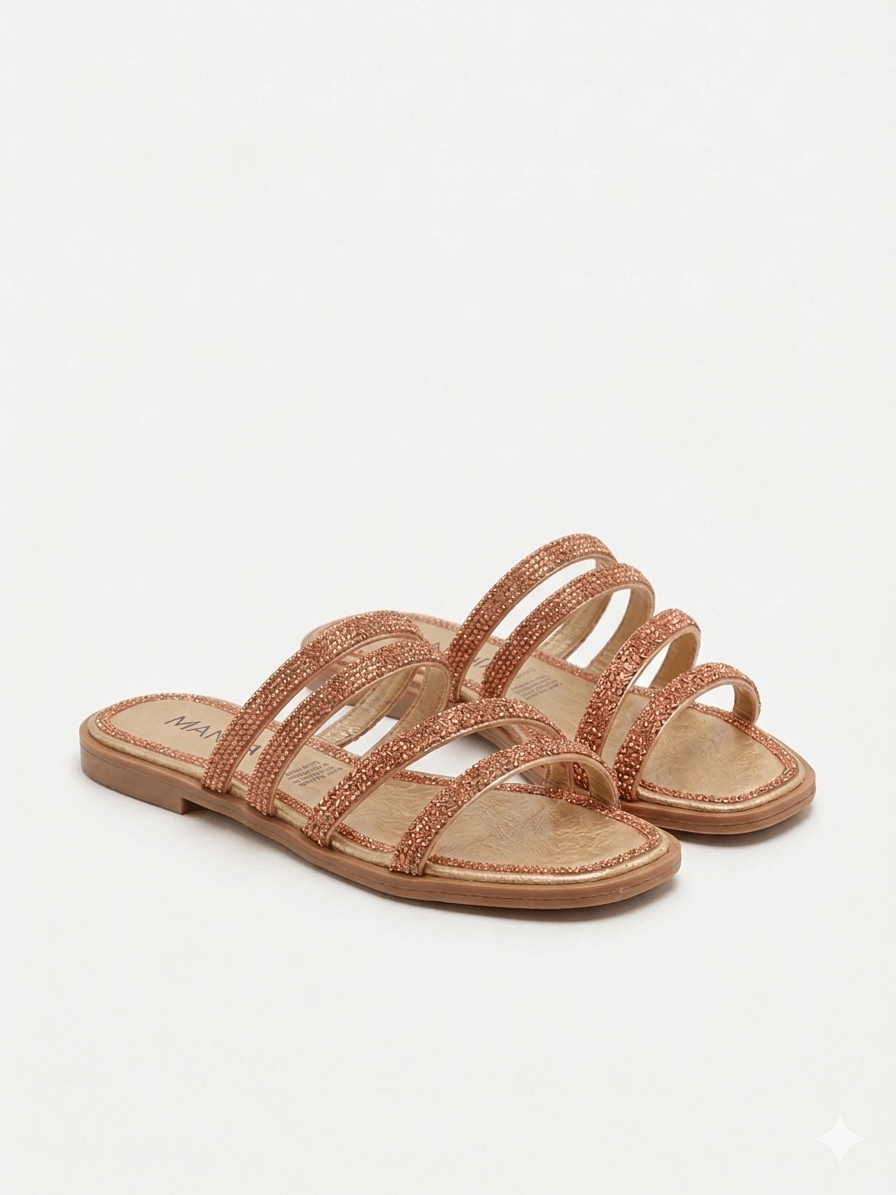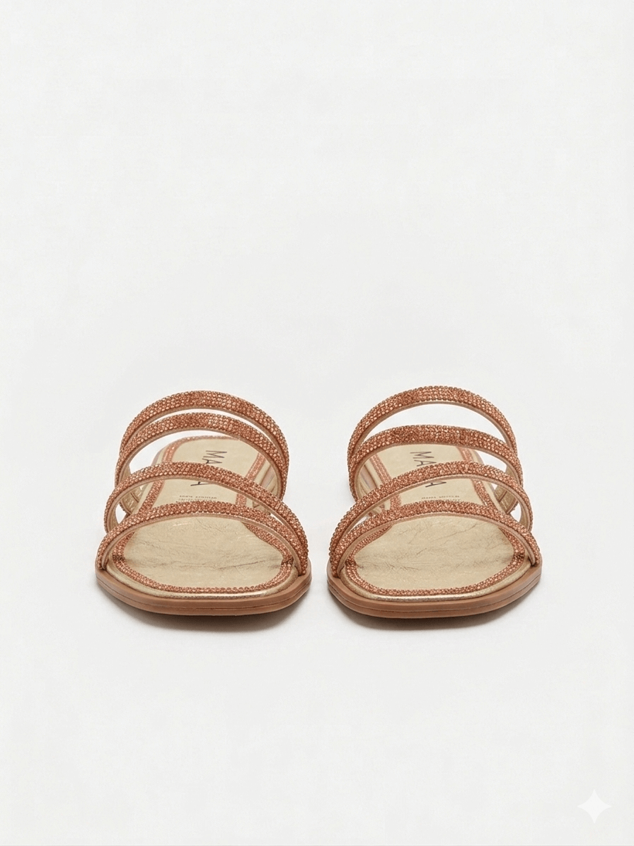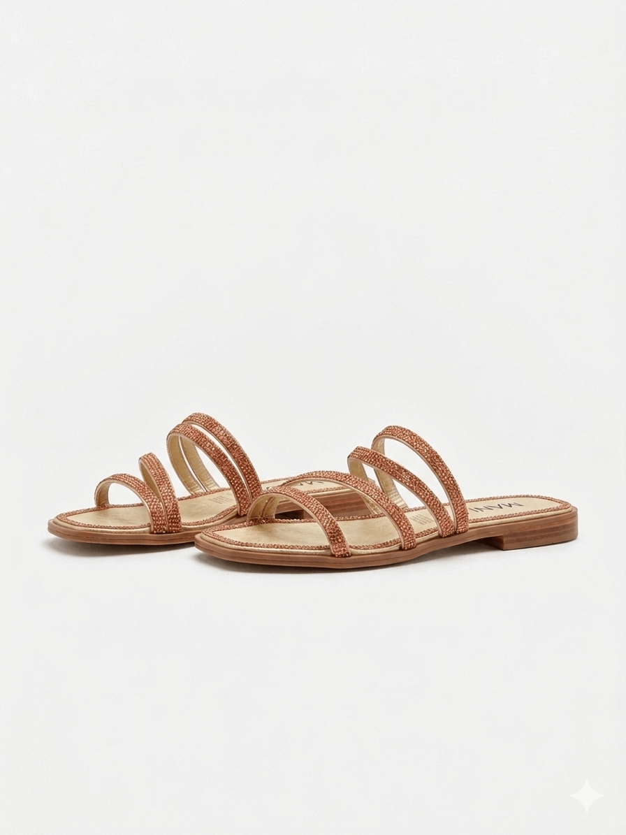 El modelo Marea es una sandalia plana pensada para quienes buscan comodidad sin renunciar al estilo. Su diseño de tiras delgadas decoradas con aplicaciones multicolor crea un efecto alegre y luminoso que destaca al instante, ideal para darle un toque especial a cualquier outfit.