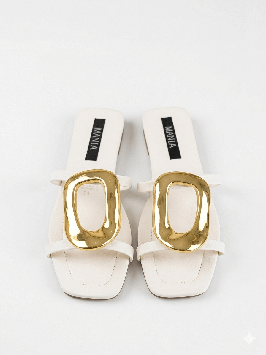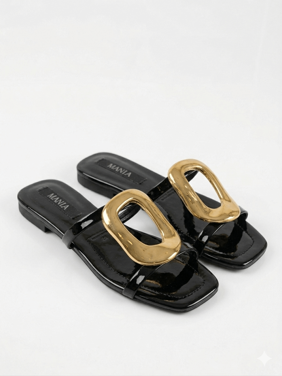 El modelo Roche es una sandalia plana diseñada para quienes buscan un estilo elegante con un toque audaz. Su maxi herraje metálico al frente se convierte en el protagonista del diseño, aportando un efecto moderno y sofisticado que transforma cualquier outfit básico en uno más pulido.
