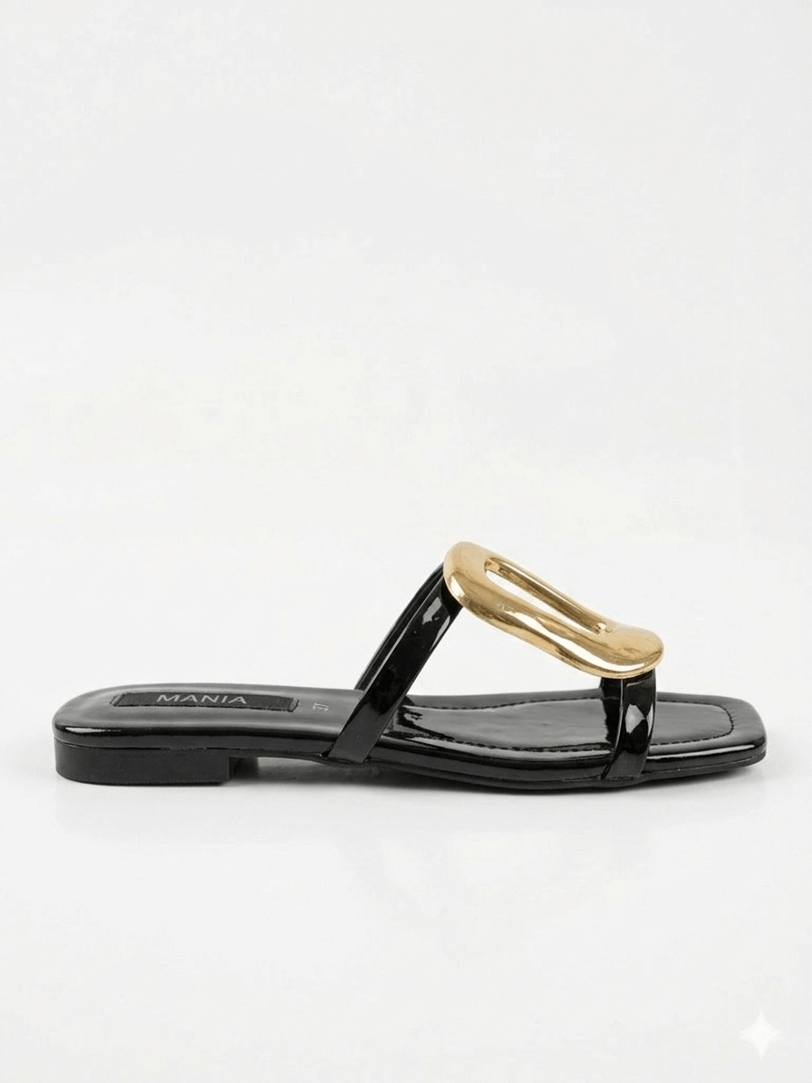 Una sandalia sofisticada y moderna que destaca por su maxi herraje metálico al frente. Su tacón plano de 1 cm la convierte en la opción ideal para elevar cualquier look con un toque elegante y contemporáneo.